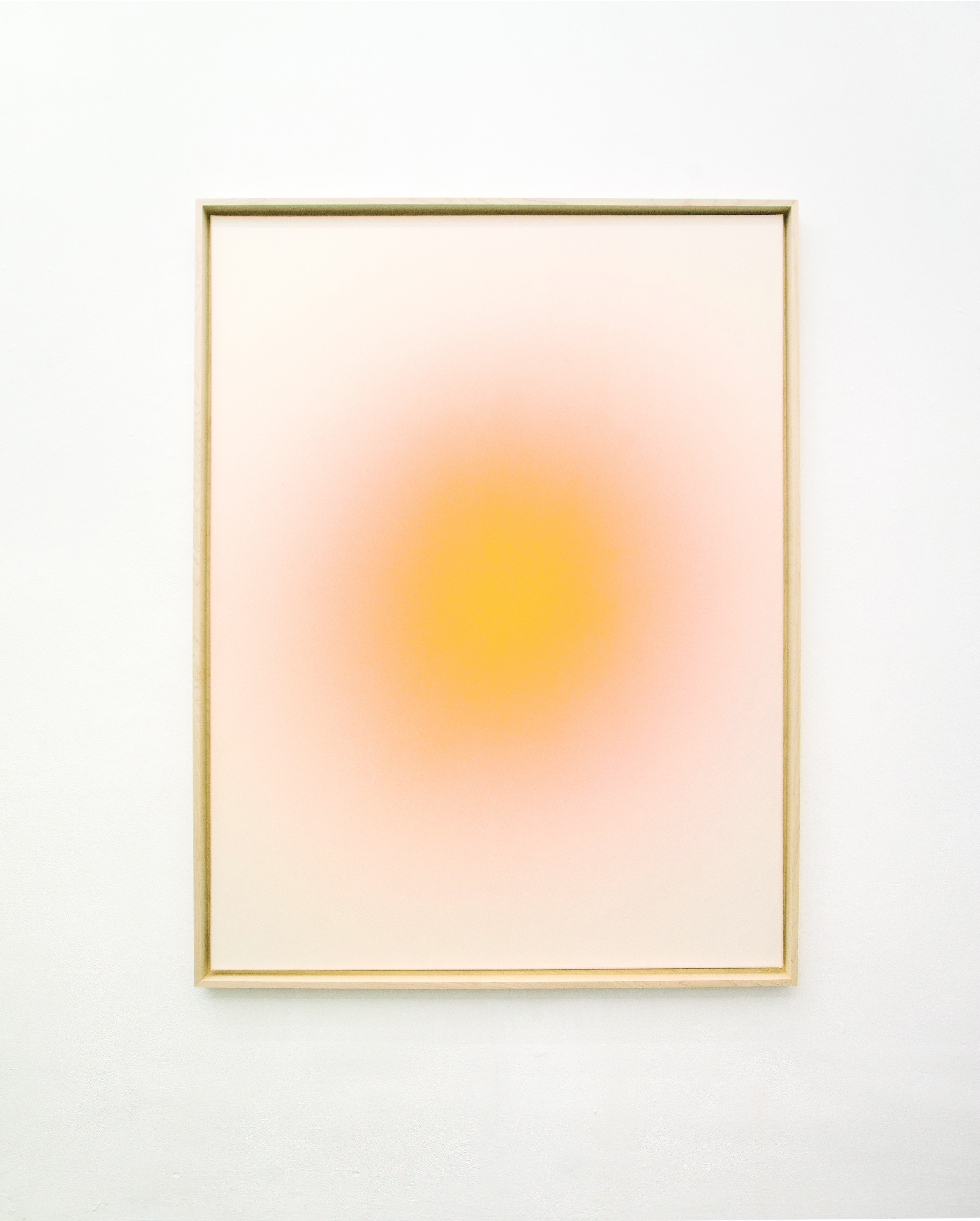 The paintings from the Atmosphere Series are the result of a continuous and meticulous physical exercise which translates into the superposition of thin layers of color graduations or colour fields, meticulously arranged over the paper. When observed from a close distance, one can see the detailed pigmentation of the paper. Seen from afar, the colour vibration appears to the eye as one tries to focus on the mesmerizing surface, creating a subtle after image with blurry edges or what the artist refers to as atmospheres.